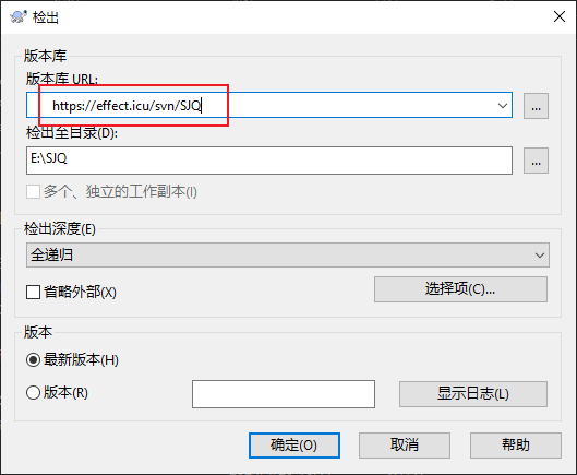 然后一般情况下连接都是https://(你的域名或者IP):(端口号,如果是默认443端口号则不用添加)/svn/(你项目名称)